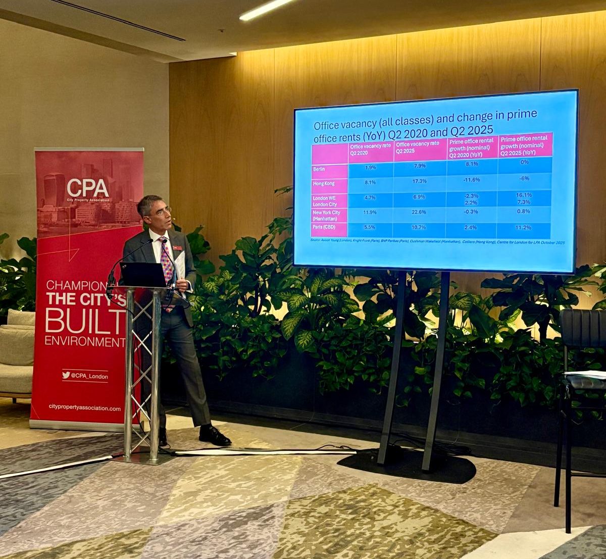 Hosted at Stonecutter Court – CO-RE’s new 13-storey, 250,000 sq ft Grade A office development for Ivanhoé Cambridge and PIMCO Prime Real Estate – the event opened with a presentation from Alexander Jan (Chief Economic Advisor, London Property Alliance) on the latest insights from our Global Cities Barometer, which confirmed London as the most attractive market for FDI.
